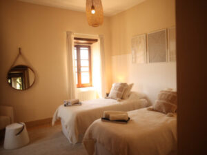 There will be a yoga class each morning and evening in the beautifully restored pitch roof barn yoga space, fully equipped with mats and props, or in the outdoor shala overlooking the orange garden.